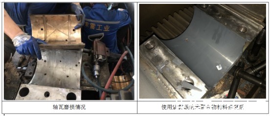 (4)固化完成后拆除轴瓦检查修复面平整光滑并且与轴瓦配合无间隙;